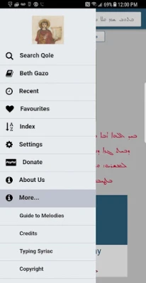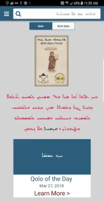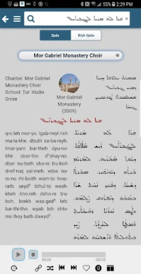 The Beth Gazo book is the primary reference to West Syriac liturgical music. The Beth Gazo Portal provides the text of the Syriac book of Beth Gazo along with recordings by various chanters. A database back-end allows adding new texts and audio recordings without the need to update the app. The settings allow the user to choose a default chanter and to set Garshuni preferences.