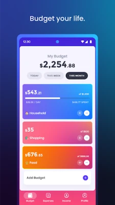 • Budgets - Create budgets to organise your spending. Each budget can have different limits, cycles and configuration.
