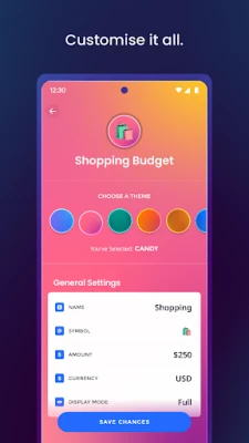 Personalize the app with many themes and colors available to suit your own style. Take advantage of extensive configurations from multi currency support, cycle management, automatic tracking, budget rollovers and many more.