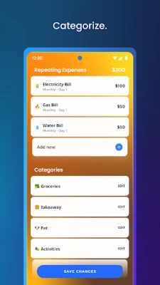 • Bills & Repeating Expenses - Automatically track repeating bills. Set up once and the app will create an expense generate a schedule of your bills and track payments of each cycle