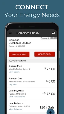 With all the convenience of a mobile app, access your Combined Energy Services account from the comfort of your mobile device! It's never been easier to: • Make Payments • Order Fuel • View your Account • And much More