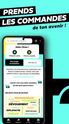Tu ne sais pas quel métier faire ? Tu as besoin d’aide pour trouver ta formation pour l’année prochaine ? L’application Hello Charly te donne le pouvoir de choisir et de construire le projet qui te ressemble.