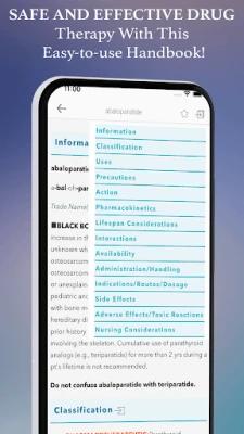 • Therapeutic and toxic blood level info incorporates in the Interactions section and under Nursing Implications and provides users with patient implications for drug administration.