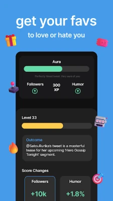 create your persona, join 100s of different fandoms, and watch as you gain your favorite characters as followers, post with them, become famous, or...get cancelled.