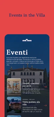 In the Events section, purchase tickets for exclusive experiences directly from the app. Take part in special guided tours, concerts, temporary exhibitions, and much more, fully immersing yourself in the villa's atmosphere.
